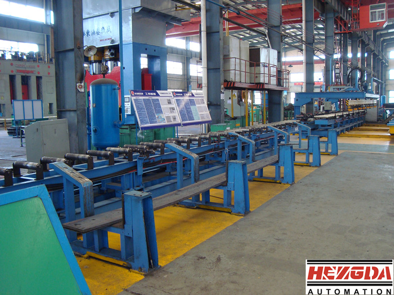 汽車縱梁壓制液壓機主要適用于大型汽車底梁的壓制成型、沖裁、落料工藝,也可以從事其他塑料材料的壓制、彎曲、成型等工業。本系列液壓機主要組成部分包括:液壓機主機、移動工作臺、液壓傳動系統、潤滑系統、電氣控制系統、及其他輔助裝置等,有輔機自動上下料裝置進行配合工作,實現車架縱梁的自動成型工藝。
